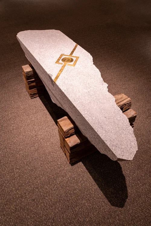Little Cottonwood Canyon Granite, Wood, Gold leaf, 24”x54”x22”.